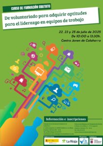 • La formación “Desarrollar habilidades de liderazgo en equipos de trabajo” tendrá lugar del 22, 23 y 25 de julio de 10:00 a 13:30 en el Centro Joven de Calahorra